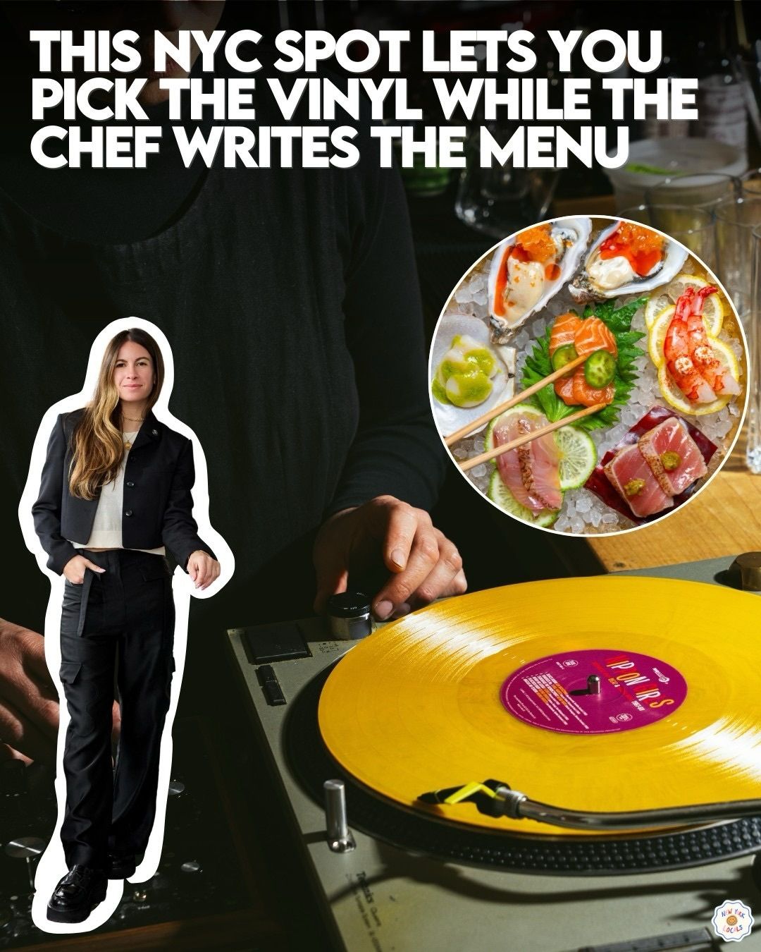![]() | At Tokyo Record Bar, dinner is guided by vinyl, with guests choosing records that shape the night’s mood. ♫ Created by Ariel Arce, the experience flows from a downstairs seven-course izakaya-style omakase by Ignacia Valdés to an upstairs cocktail bar serving Japanese-inspired plates and couture drinks. 🍹 |